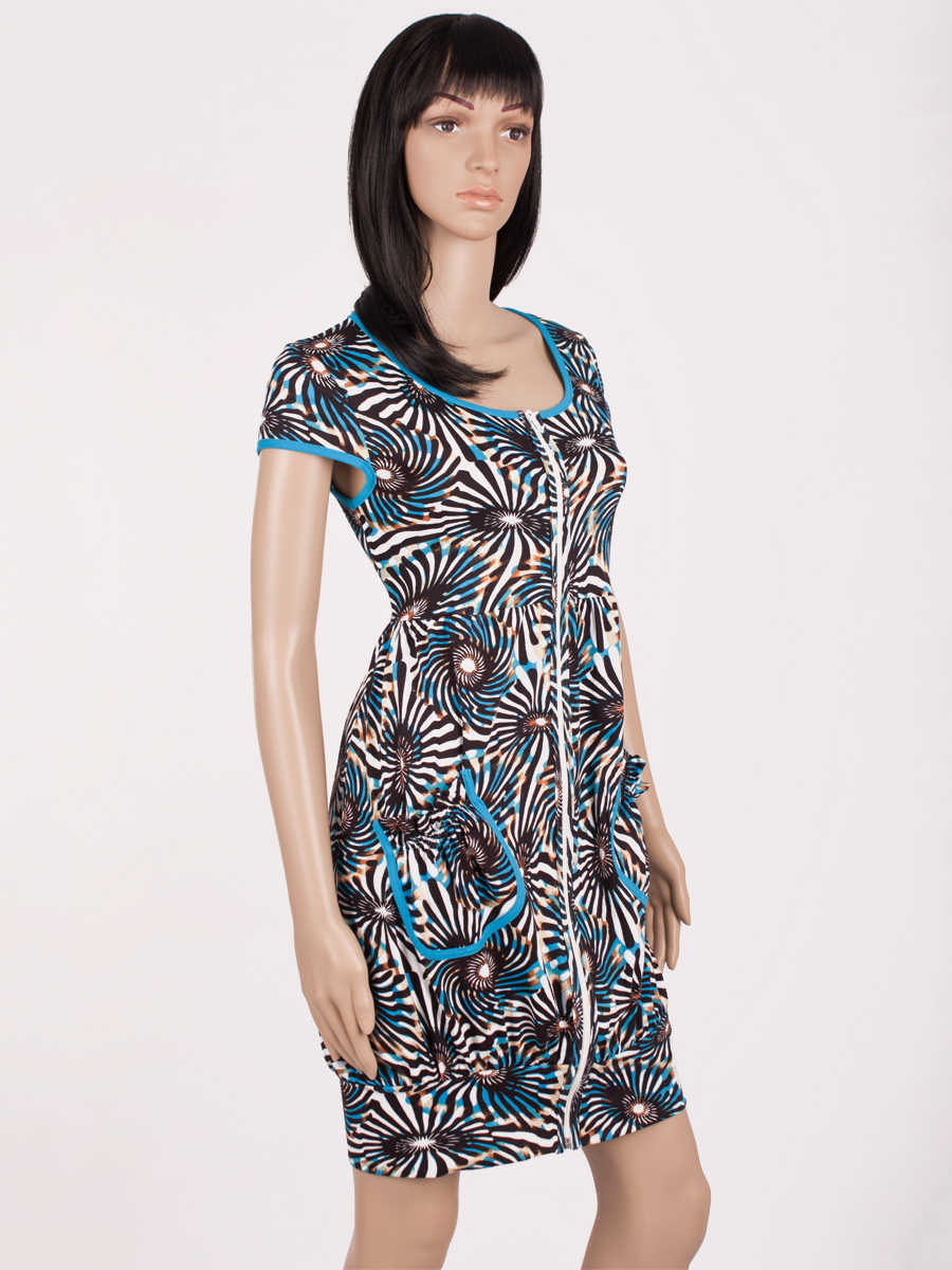 Халат жіночий на блискавці з манжетом ХЖ-06-02 абстракція 206 (синій, чорний) - пляжний халат з легкого високоякісного матеріалу. Порадує свою володарку відмінною якістю, зручністю та практичністю.