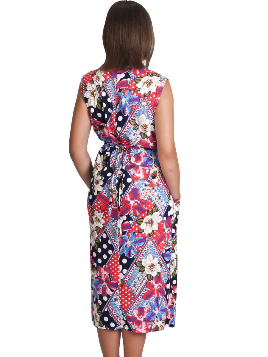 Домашній халат жіночий без рукава на запах ХЖ-04-01 абстракція 397 (мультіколор) - відмінно сідає по фігурі. Він комфортний і яскравий. Ідеальний для домашньої роботи та прийому гостей. Особливо він незамінний влітку.