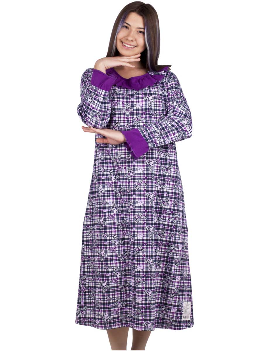 Нічна сорочка тепла довга СН-03 абстракція 310 (фіолетовий)