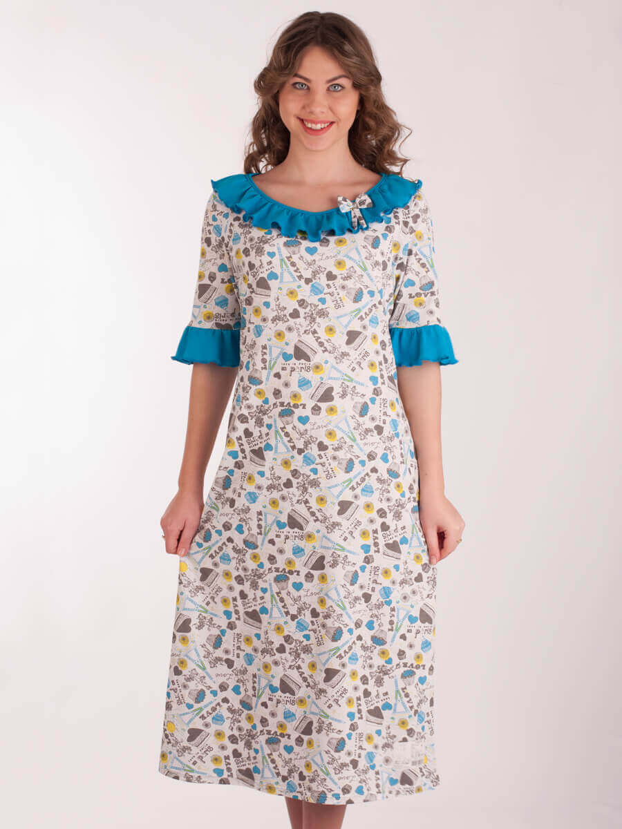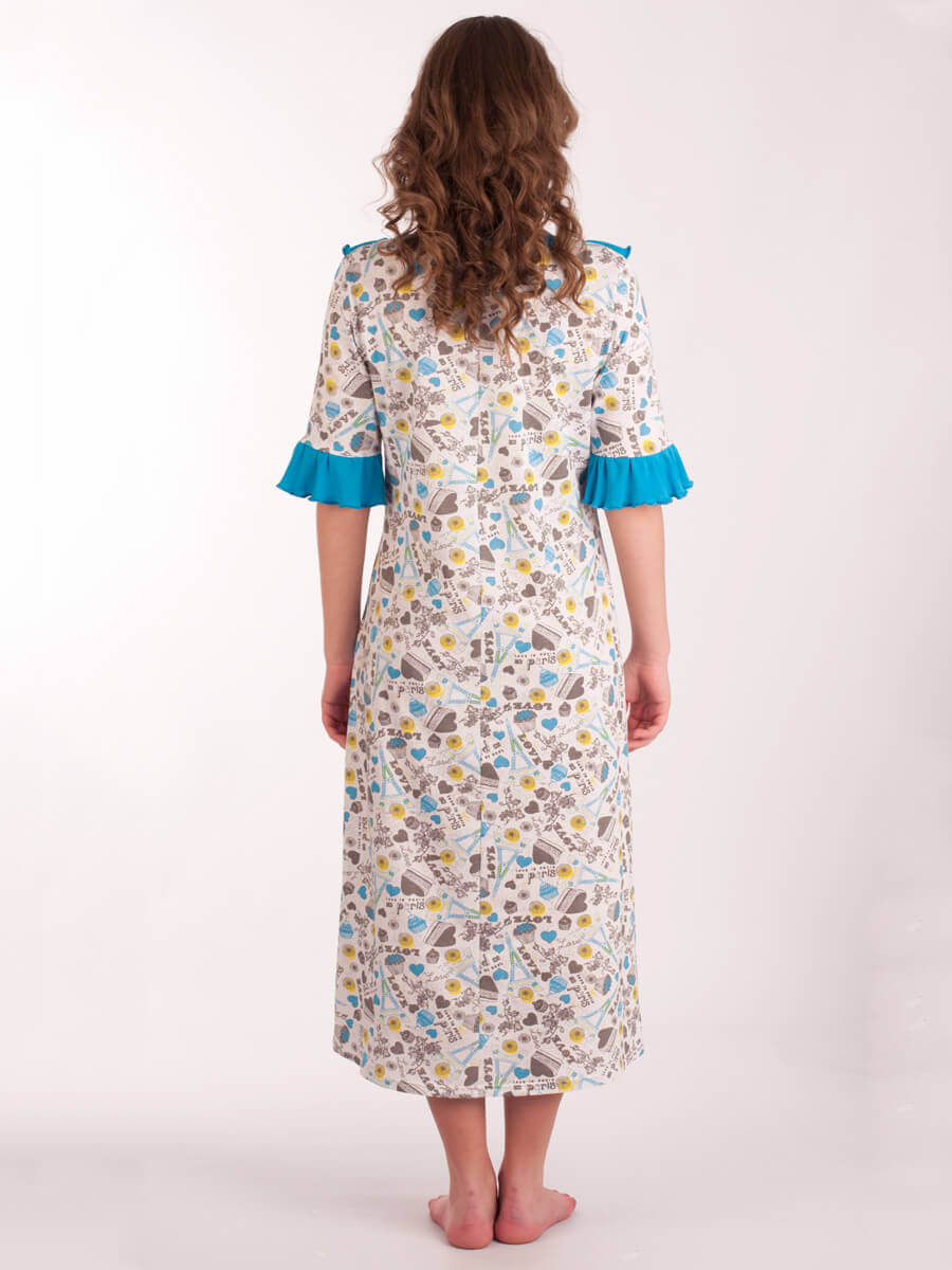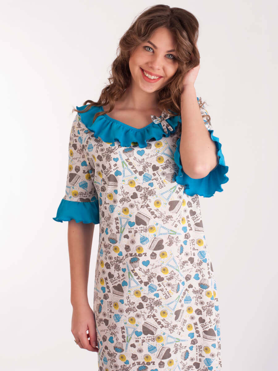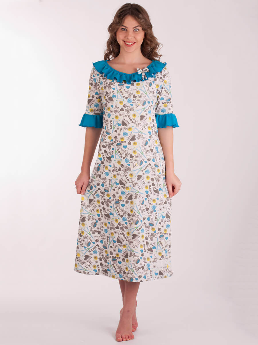 Жіноча нічна сорочка СЖ-03 абстракція 256 (синій, білий, сірий)