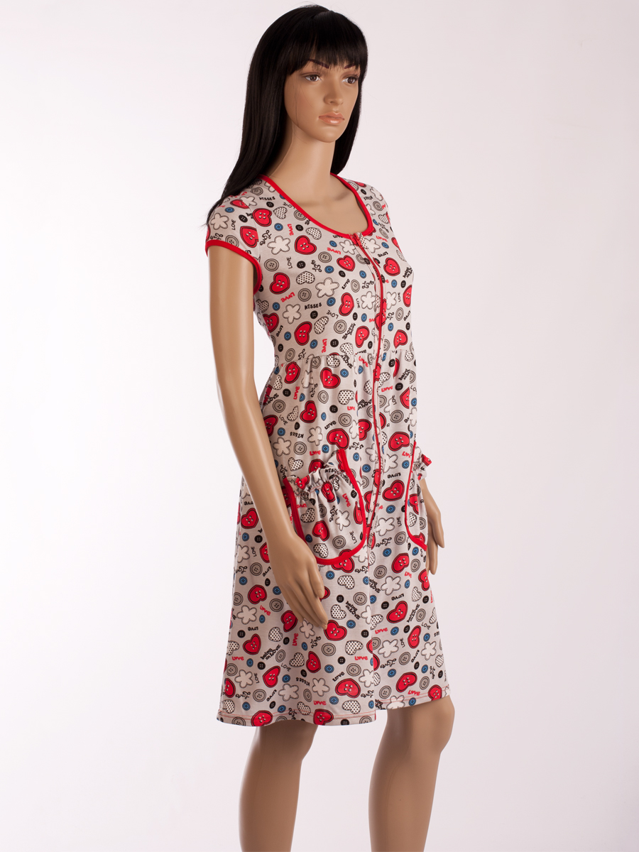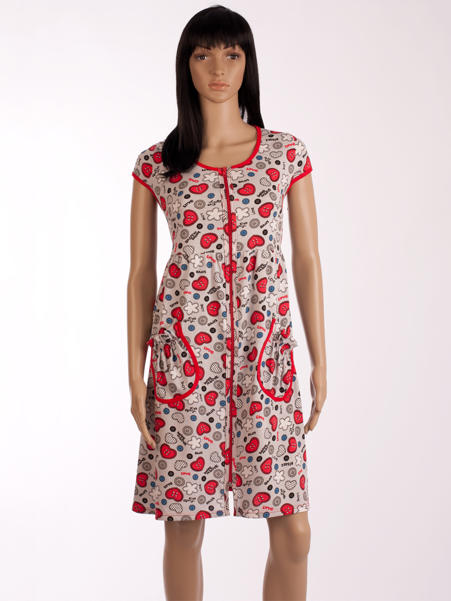 Халат женский на молнии ХЖ-06-01 абстракция 215 (красный, серый) - пляжная удобная одежда на каждый день. Модель имеет молнию и два кармана. Очень практичный в носке летний женский халат.
