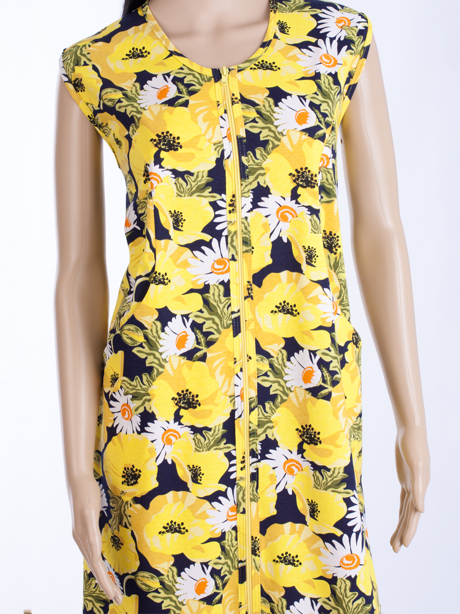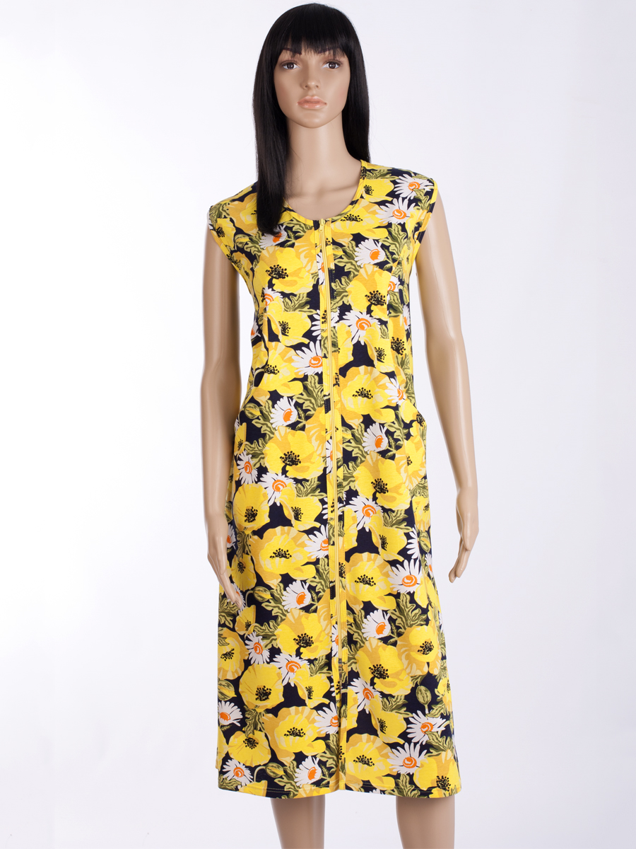 Домашний халат без рукава ХЖ-08-01 абстракция 280 (жёлтый) на молнии. Приятный на ощупь материал, отличное качество, яркий дизайн, простой фасон - вот отличительные особенности представленной модели. Такой симпатичный халат прекрасно подходит для дома и отдыха.