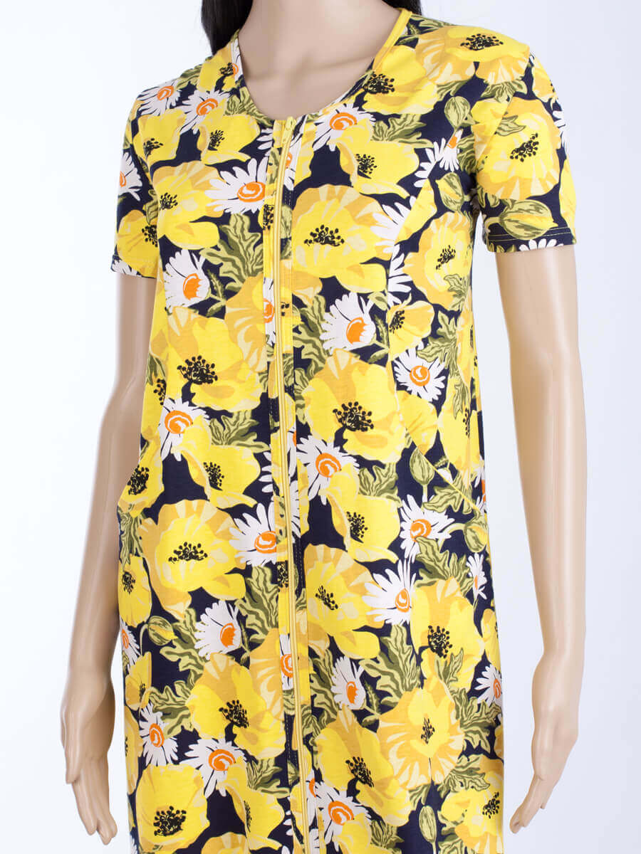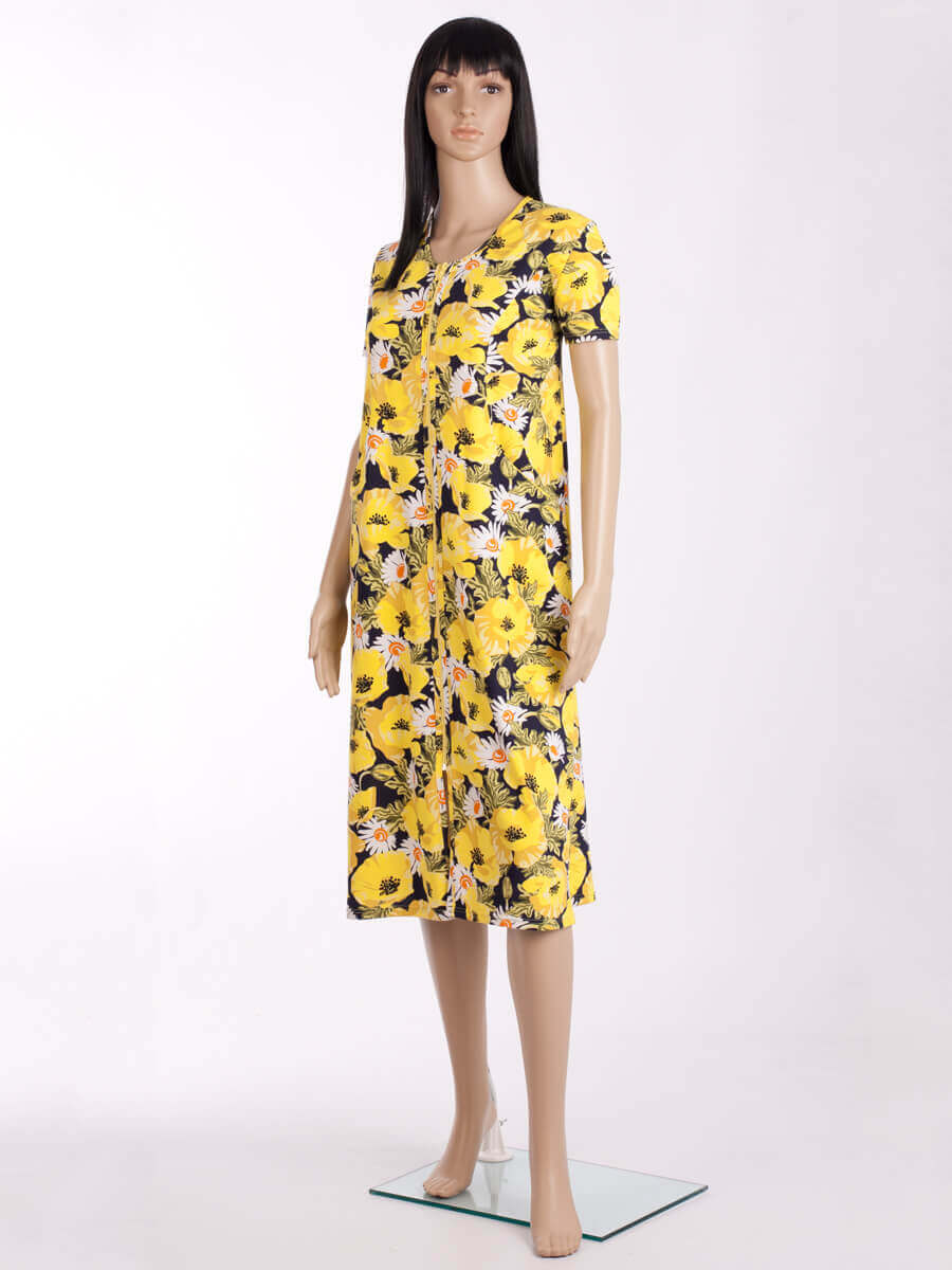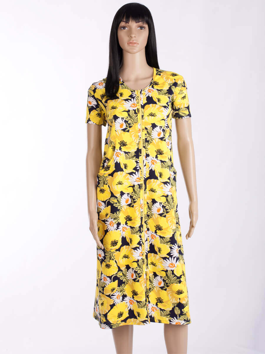 Домашний халат короткий рукав ХЖ-08-02 абстракция 280 (жёлтый) изготовлен из практичного и приятного на ощупь материала. Очень оригинальный и красивый халат прямого силуэта. Он поможет вам сделать стильный образ. Изделие создаст ощущение уюта и комфорта.