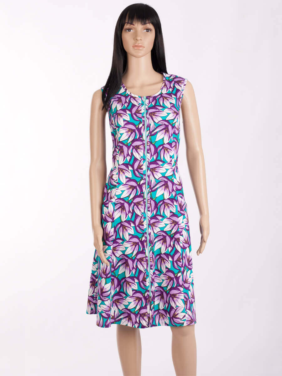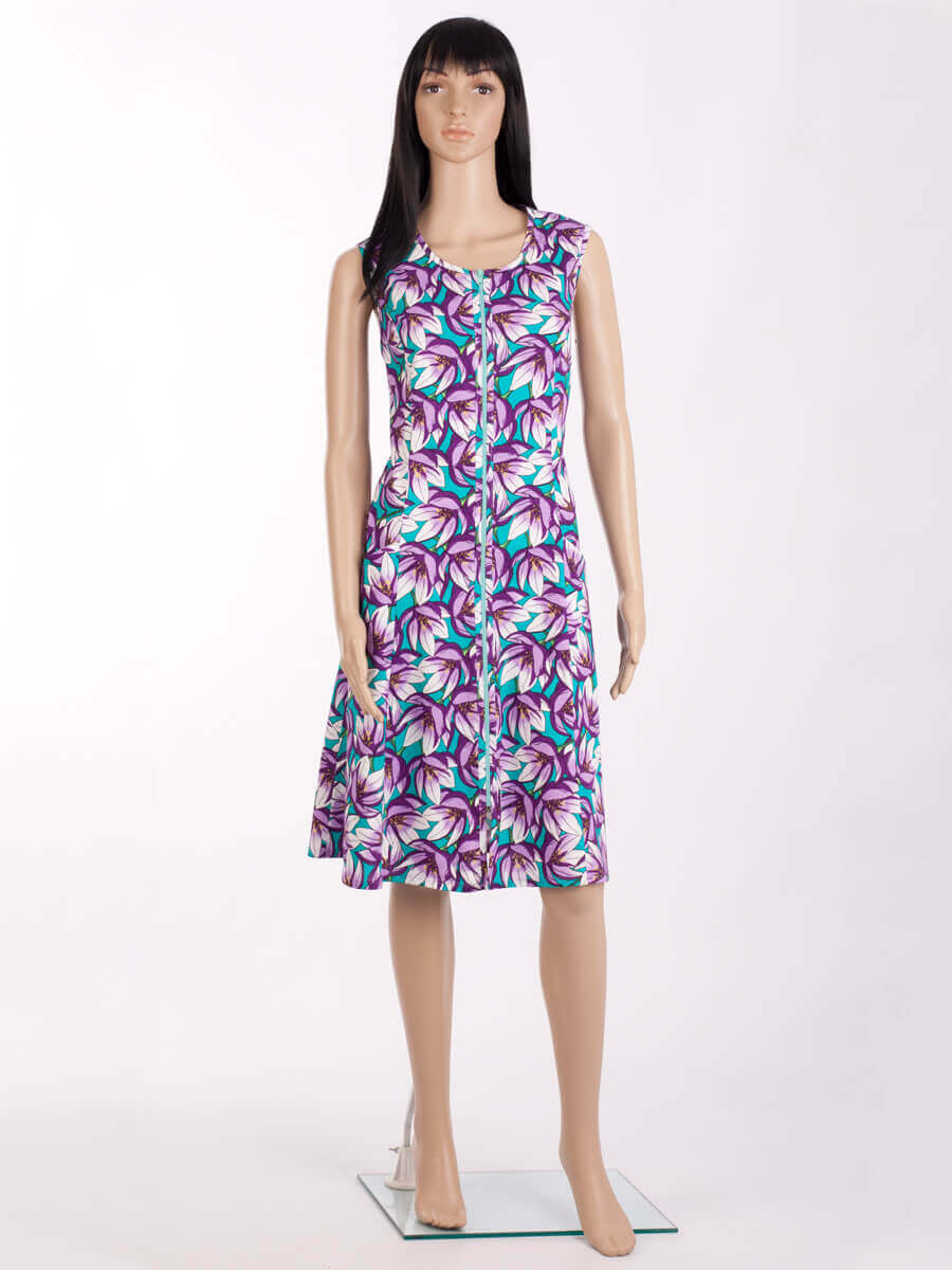 Женский халат без рукава на молнии ХЖ-15-01 абстракция 277 (зелёный, фиолетовый) очень красивый и стильный. Эта повседневная модель идеально подойдет для той, которая любит комфорт и уют.