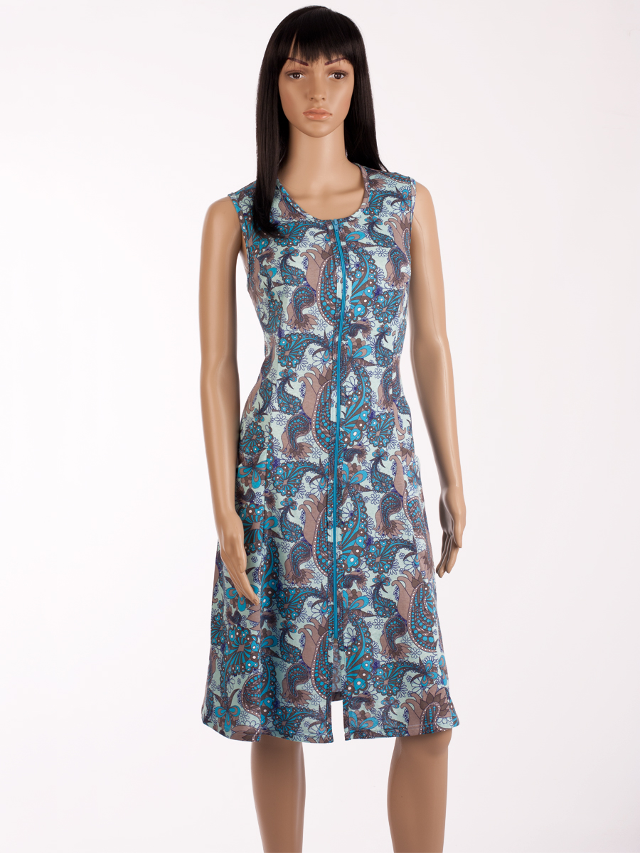 Женский халат без рукава на молнии ХЖ-15-01 абстракция 222 (синий) очень красивый и стильный. Эта повседневная модель идеально подойдет для той, которая любит комфорт и уют.