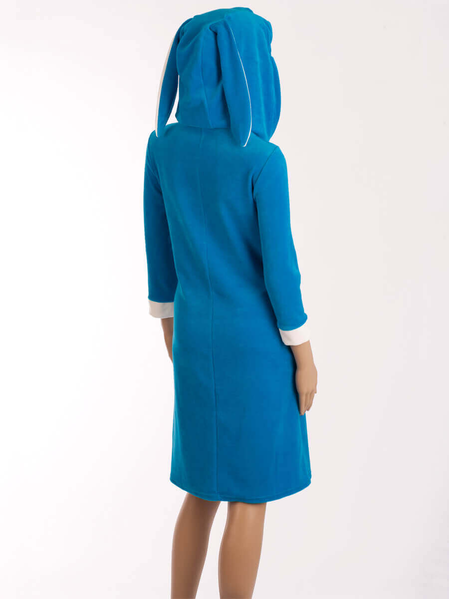 Велюровый халат с ушками ХЖ-10 бирюза (синий) - популярная модель с ушками на капюшоне. Отличный вариант для зимней домашней одежды. Изготовлен из мягкого качественного велюра.