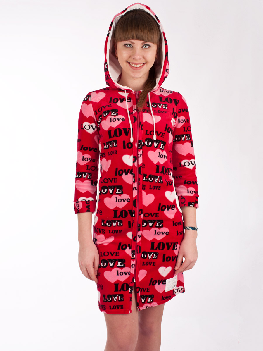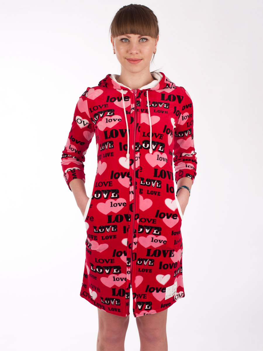 Велюровый халат на молнии с капюшоном ХЖ-13 абстракция 053 (красный) - повседневная модель, которая подарит своей обладательнице настоящий комфорт. Утеплённый халат с капюшоном - отличный выбор. Он подойдет всем тем, кто небезразличен к практичной домашней одежде.