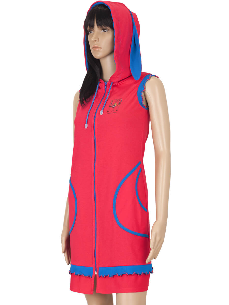 Женский халат с ушками ХЖ-16 малиновый (красный) сочетает в себе удобство, комфорт, красоту и высочайшее качество. Пошит из практичного, мягкого и легкого материала (кулира). Позволяет коже дышать и прекрасно впитывает влагу. Устойчив к смятию. Имеются боковые карманы, капюшон с ушками.