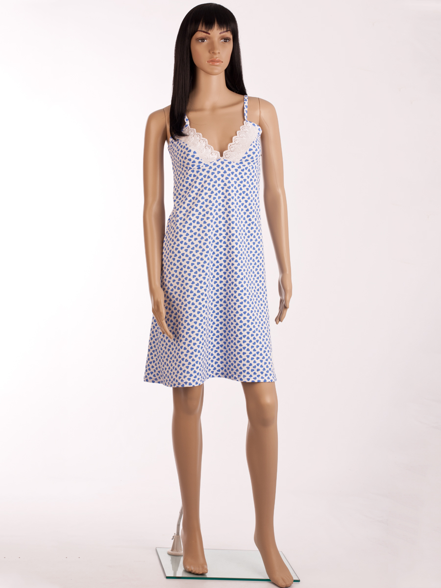 Ночная сорочка с кружевом на бретелях СК-01 абстракция 236 (голубой, белый)